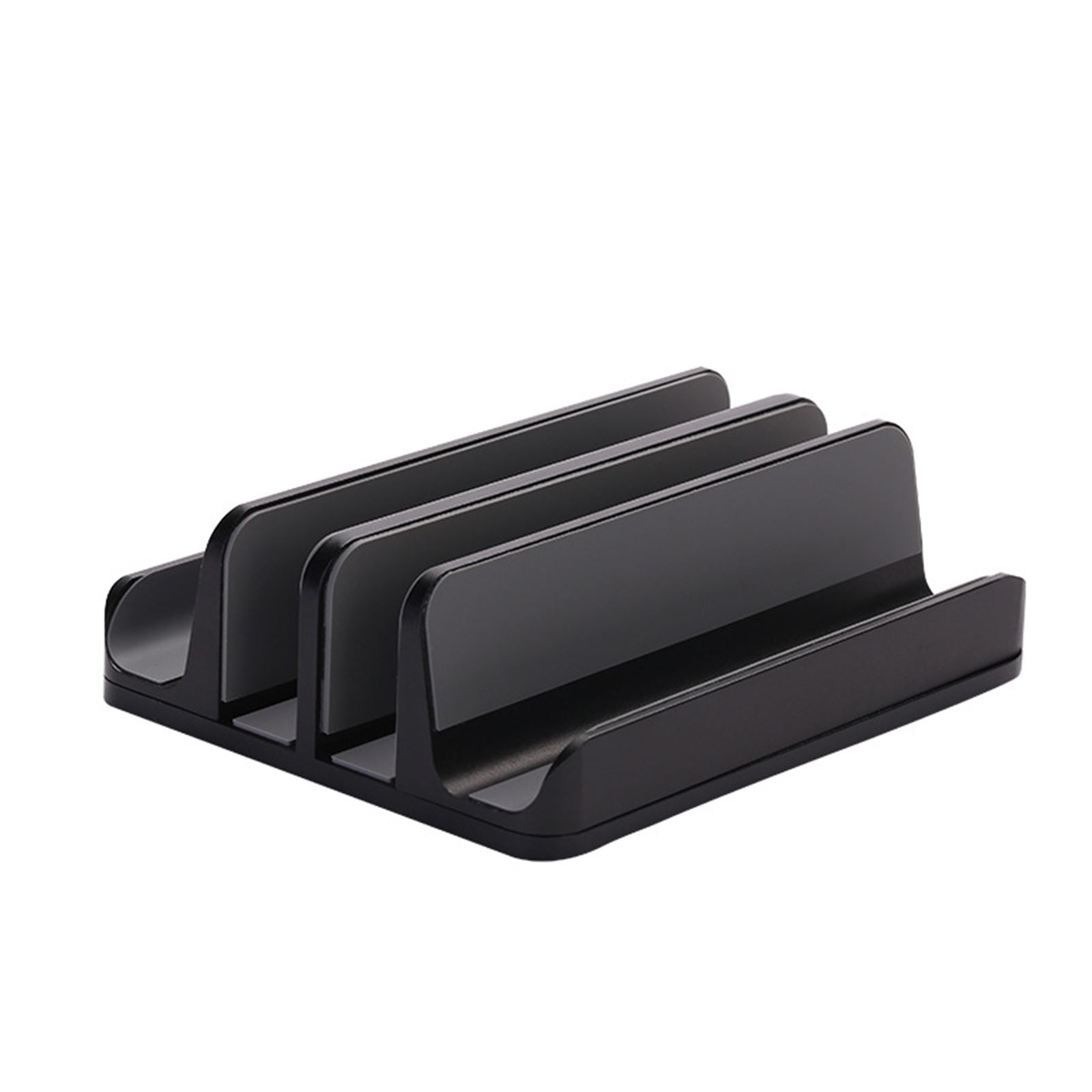Support vertical pour laptop en aluminium anodisé. Économise l'espace bureau en mode clamshell. Largeur ajustable pour tous MacBook et laptops Windows.